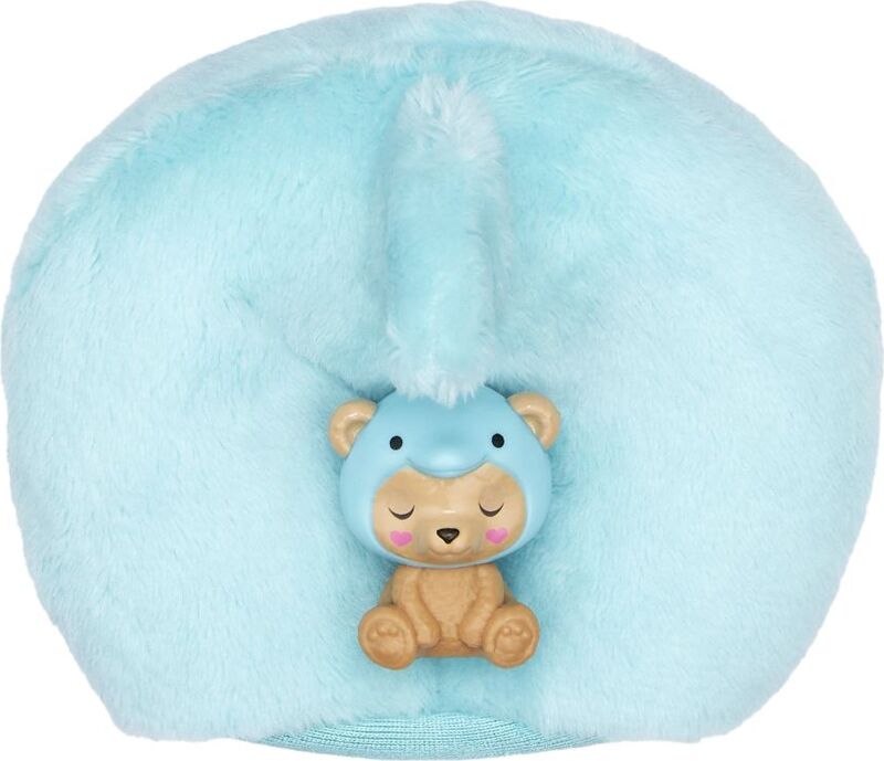 Welche Puppe wirst du finden? Öffnen Sie die Verpackung und finden Sie einen entzückenden Teddybären in einem Plüsch-Delphin-Kostüm ... wie süß!