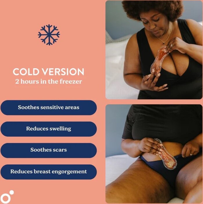 Dank der dualen Funktion von Wärme und Kälte bietet er natürliche Erleichterung für empfindliche Bereiche, unterstützt die Regeneration des Körpers und sorgt für Momente des Wohlbefindens in der herausfordernden Zeit nach der Geburt.