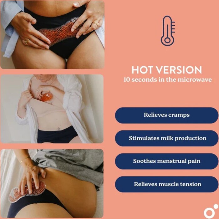 Im Wärmemodus, nach wenigen Sekunden in der Mikrowelle oder im Wasserbad, spendet er sanfte Wärme, die die Muskeln entspannt, Krämpfe, nachgeburtliche Wehen und Menstruationsschmerzen lindert und gleichzeitig die Milchproduktion unterstützt.