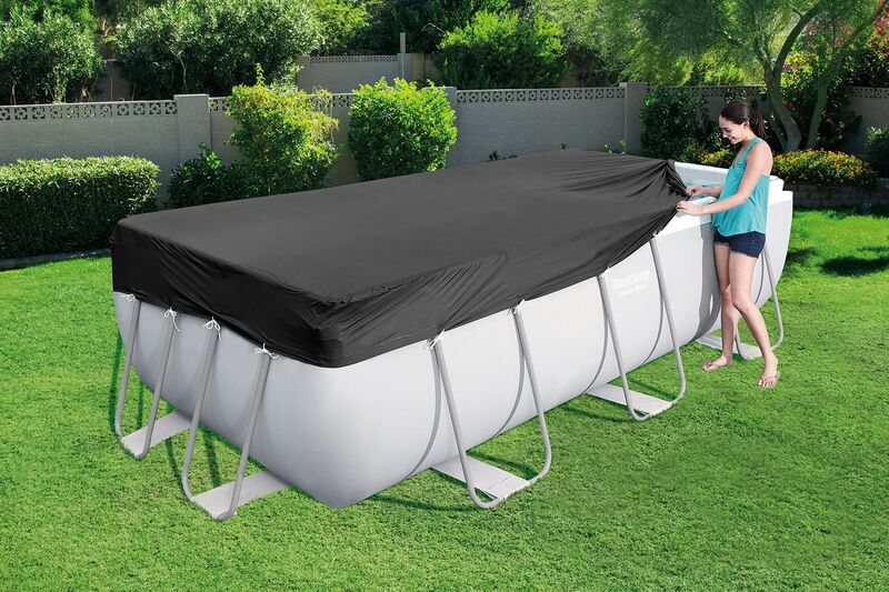 Bestway® obdĺžniková krycia plachta z robustného vopred testovaného PVC vinylu účinne chráni vodu vo vašom bazéne pred všetkými druhmi nečistôt. Vďaka čiernej farbe a odolnému materiálu zaručuje spoľahlivú ochranu počas celej sezóny aj mimo nej.