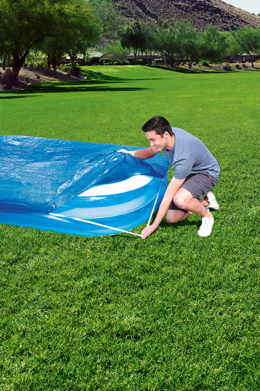 Premyslený dizajn s odtokovými otvormi účinne zabraňuje zhromažďovaniu vody na kryte a predlžuje tak životnosť vášho bazéna. Pomocou upevňovacích lán sa dá plachta bez námahy pripevniť a spoľahlivo drží v každom počasí. Či už chcete bazén zakryť na pár dní alebo na dlhší čas, PE krycia plachta Bestway® ponúka dokonalú ochranu.