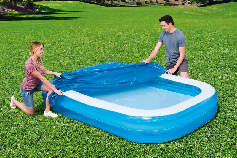 Udržujte svoj rodinný bazén v špičkovej forme s kvalitnou PE krycou plachtou na bazén od Bestway®! Táto bazénová plachta bola špeciálne vyvinutá pre obdĺžnikové rodinné bazény s rozmermi 262 x 175 cm a ponúka vám bezkonkurenčnú ochranu pred nečistotami. S rozmerom 295 x 220 cm plachta dokonale pasuje na váš bazén a zaisťuje, že zostane vždy v perfektnom stave.
