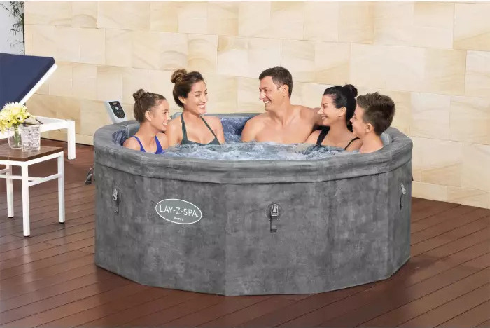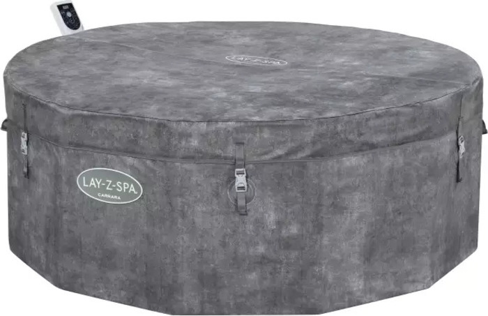 Der energieeffiziente Bestway® LAY-Z-SPA® Carrara AirJet™ Whirlpool wird mit einem 2-teiligen isolierenden Thermodeckel, einem Chemikalien-Dosierer ChemConnect®, einer Filterkartusche der Größe VI, vier gepolsterten Schaumstoffkissen und zwei Reparaturflicken geliefert. Es ist alles enthalten, was Sie für ein unvergessliches Spa-Erlebnis benötigen.