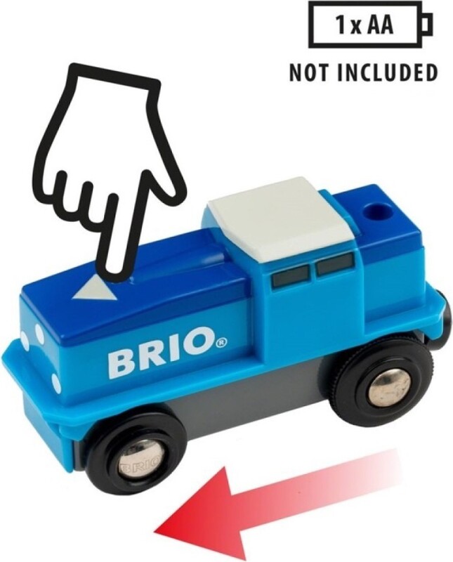 Die Brio Güterlokomotive hilft beim Transport schwerer Lasten. Die Lokomotive lässt sich leicht steuern. Durch Klicken auf den Pfeil starten Sie den Motor und durch erneutes Tippen stoppen Sie die Lokomotive.