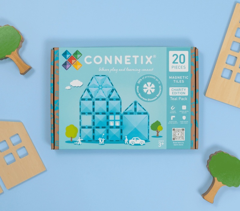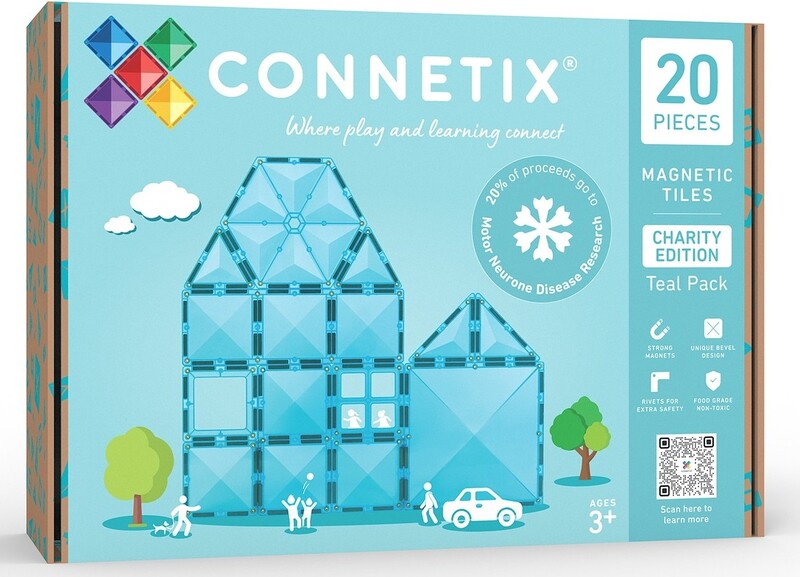 Mit 20 türkisen magnetischen Bausteinen bringt dieses Paket auffällige Designs, endlose Kreativität und sinnvolles Spiel mit Farben, das symbolisch das internationale Bewusstsein und die gemeinsame Unterstützung von Menschen mit MND erhöht.