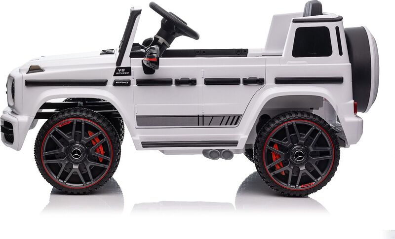 Elektrisches Auto Mercedes G, weiß, Einzelsitz, 12V Batterie, 2,4 GHz Fernbedienung, 2XMOTOR, USB, SD-Karte, ORIGINAL Lizenz.