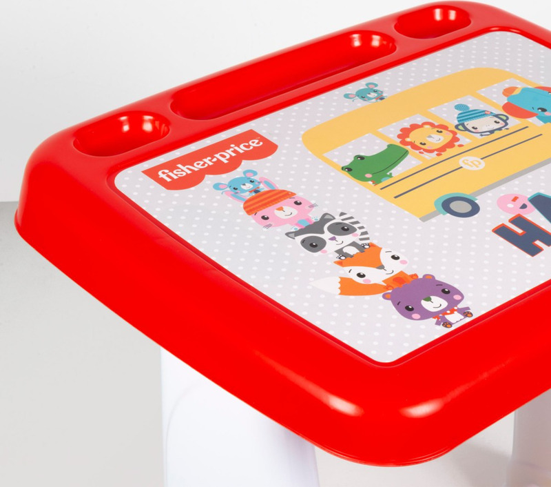 Dieser Studien Tisch mit Fisher-Price Lizenz ist leicht zu montieren und ein großartiger Ort, an dem Ihr Kind bequem sitzen und Hausaufgaben machen oder zeichnen kann.Er ist leicht und bunt. Er hat einen bequemen Sitz und eine ergonomische Fußstütze mit Rillen, die ein Abrutschen kleiner Füße verhindern, und an der Vorderseite des Tisches gibt es auch ausreichend Stauraum für Stifte und Bleistifte.