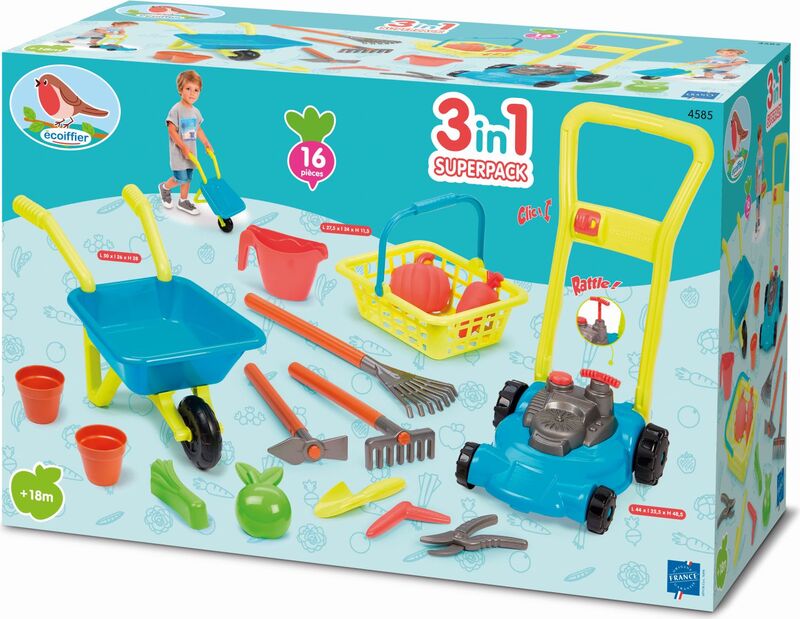 Ecoiffier Super Pack Garten 3 in 1 ist ein umfassendes Set von Gartenwerkzeugen für die Kleinsten, das den Kindern die Möglichkeit gibt, die Gartenarbeit wie echte Erwachsene nachzuahmen. Das Set besteht aus Kunststoff und bietet dank seines realistischen Designs stundenlangen kreativen Spielspaß im Freien. Es ist geeignet für Kinder ab 18 Monaten.