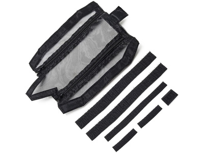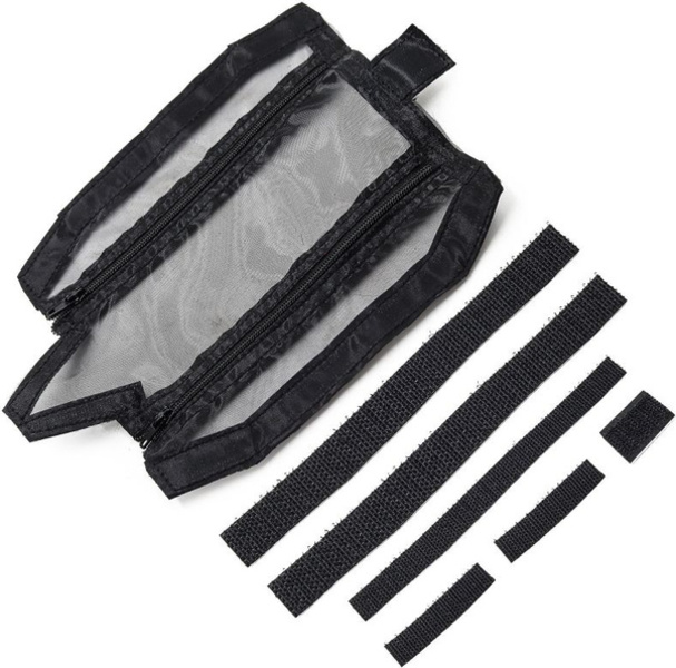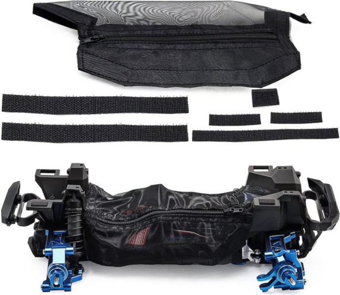 Setzen Sie die H-Speed Staubschutzabdeckung von oben auf das Chassis und klappen Sie die Ränder zur Seite oder unter das Chassis. Richten Sie die Position der Abdeckung aus und befestigen Sie das beiliegende doppelseitige Klettband am Chassis. Mit dem Reißverschluss auf beiden Seiten können Sie die Staubschutzabdeckung entfernen.