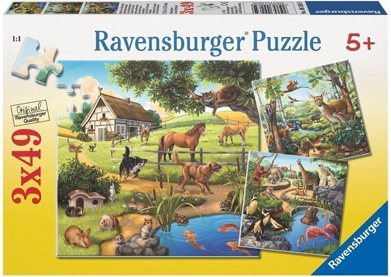 Puzzle mit drei Motiven in einem Paket. Alter: 5+