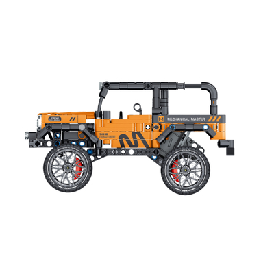 Wir präsentieren Ihnen das erstaunliche Konstruktionsspielzeug MECHANICAL MASTER - Jeep orange, das jeden kleinen Konstrukteur und Autoliebhaber begeistern wird.