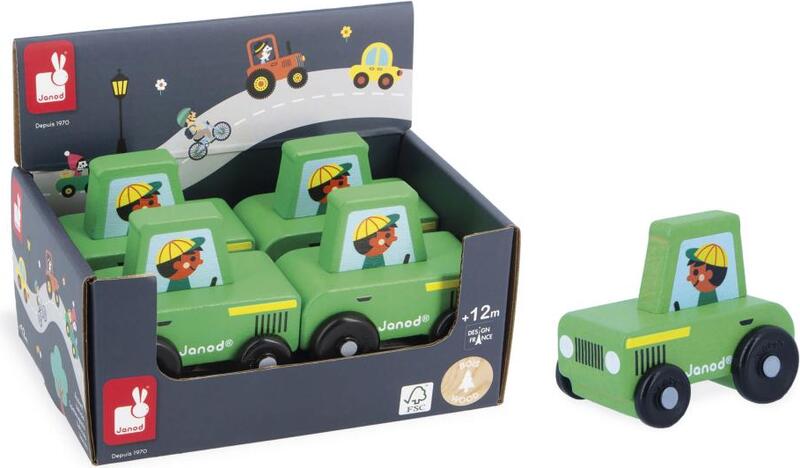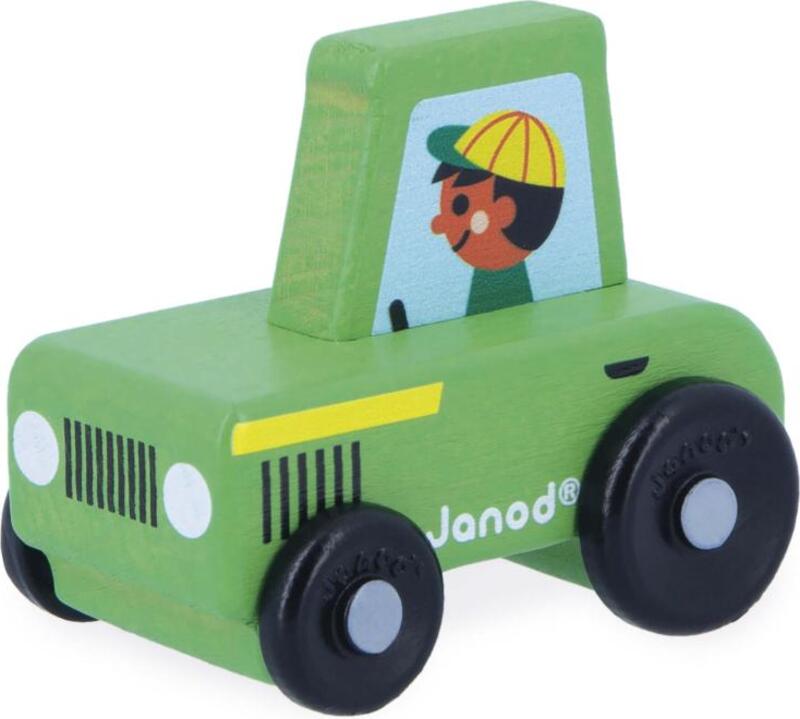 Dieser kleine Traktor von Janod ist Teil unserer Cross Roads-Kollektion: einer Serie von Spielmatten mit Strecken, die noch mehr Spaß machen, wenn Sie sie mit unseren Würfelsets und kleinen Holzfahrzeugen ergänzen.