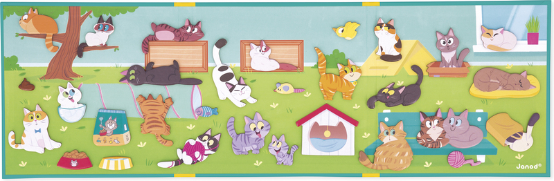Lassen Sie Ihrer Fantasie freien Lauf mit dieser Katzenkollektion! Jede hat ihren Lieblingsplatz: auf einem Ast, im Korb oder gut versteckt!Dank der großen magnetischen Rückwand und 30 Magneten kann Ihr Kind eigene Geschichten erfinden, indem es die Katzen nach Belieben verschiebt. Tragbares Format, ideal zum Spielen überall und immer wieder. Ein Spiel, das die Fantasie, Kreativität und Feinmotorik anregt.