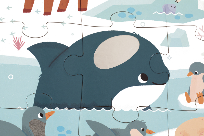 Begeben Sie sich auf eine Entdeckungsreise in die Polarregionen und ihre Tiere mit diesem riesigen taktilen Puzzle!
