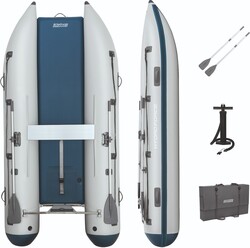 Robuste Konstruktion für maximale Sicherheit: Erleben Sie unbegrenzten Wasserspaß mit dem kompletten Set des Sportbootes Bestway® Hydro Force® Corinth Elite™. Mit den Abmessungen 230 x 130 x 33 cm und einer Tragfähigkeit von bis zu 280 kg bietet dieses Boot Platz für zwei Erwachsene. Das robuste TriTech®-Material sorgt für Widerstandsfähigkeit und Langlebigkeit, während drei separate Luftkammern zusätzliche Sicherheit bieten. GS-Zertifizierung für höchste Qualität: Dank der GS-Zertifizierung von TÜV Rheinland können Sie sich auf Qualität und Sicherheit verlassen. Das Sportboot Corinth Elite™ hat alle strengen Tests bestanden, um Ihnen ein sicheres und zuverlässiges Erlebnis auf dem Wasser zu garantieren. Durchdachte Ausstattung für optimalen Komfort: Bewegliche Ruderhalter und fest angebrachte Ruderhalter erleichtern das Rudern. Der stabile aufblasbare Boden und der abnehmbare Sitz bieten zusätzlichen Komfort bei Ihren Ausflügen. Halteleinen und Stahlziehösen sorgen für Stabilität und Sicherheit. Die salzwasserbeständige Sperrholzoberfläche des Sitzes ermöglicht es Ihnen, das Wasser unbesorgt zu genießen. Der Motorhalter unterstützt Motoren bis 3 PS (Motor nicht im Lieferumfang enthalten). Schnelle Einsatzbereitschaft: Dank des Schnellverschlussventils und der Boston-Ventile ist Ihr Sportboot im Handumdrehen bereit zum Segeln. Das Ablassventil erleichtert das Entleeren nach einem aktiven Tag auf dem Wasser. Praktisches Zubehör im Lieferumfang enthalten: Das Set enthält alles, was Sie für Ihr nächstes Abenteuer benötigen: ein Paar 152 cm lange Ruder, eine Zweitaktkolbenpumpe mit Manometer, ein 10 Meter langes Ziehseil, eine Tragetasche und ein Reparaturset für kleinere Notfälle. Maximaler Komfort und Mobilität: Die praktische Tragetasche ermöglicht einen einfachen Transport und eine einfache Lagerung des Bootes. Egal, ob Sie am See entspannen oder die Küste erkunden möchten - das komplette Set des Sportbootes Bestway® Hydro Force® Corinth Elite™ ist Ihr zuverlässiger Begleiter. Konstruktion: Abmessungen im aufgeblasenen Zustand 230 x 130 x 33 cm Tragfähigkeit 280 kg 3 Luftkammern Hergestellt aus strapazierfähigem dreilagigem TriTech®-Material GS-Zertifizierung (TÜV Rheinland) Für 2 Erwachsene Ausstattung: Integrierte, frei bewegliche Ruderhalter Stabiler, aufblasbarer Boden Ruderklammern  Abnehmbarer Sitz Halteleinen an beiden Seiten Stahlziehösen Sperrholz, salzwasserbeständig (Sitz) Motorhalter (max. 3 PS, Motor nicht im Lieferumfang enthalten) Schnellverschlussventile Boston-Ventile Ablassventil Lieferumfang: 1 Paar Ruder 152 cm Zweitaktkolbenpumpe mit Manometer 10 Meter Ziehseil Tragetasche Reparaturset