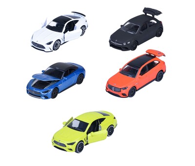 Geschenkset mit Metallautos von Mercedes-AMG mit Freilauf.