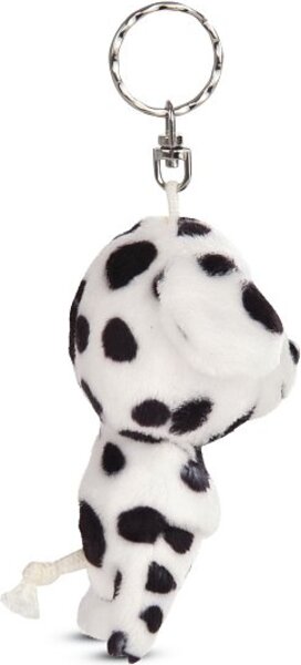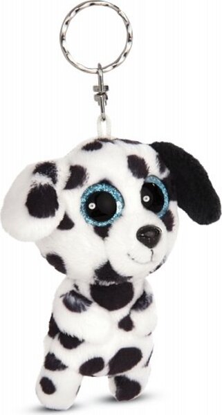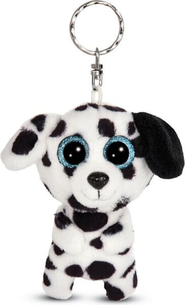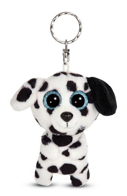 Süßer gefleckter Dalmatiner mit blauen funkelnden Augen. Mit einem Ring auf dem Kopf wie ein Schlüsselring. Für die GREEN-Serie von Nici werden fast ausschließlich Plüsch- und Füllmaterialien aus recycelten Materialien verwendet.