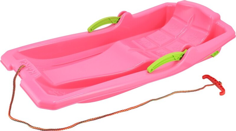 Kunststoffschlitten mit Bremsen Baby Mix KAROL. Dank der Bremsen ermöglicht dieses Modell ein sicheres Anhalten, eine Kontrolle der Fahrtrichtung und minimiert so unerwünschte Kollisionen beim Fahren den Hang hinunter. Sie sind aus hochwertigem Kunststoff gefertigt, der bis zu -20 °C frostbeständig ist. Sie sind mit einer Schnur mit Griff ausgestattet.