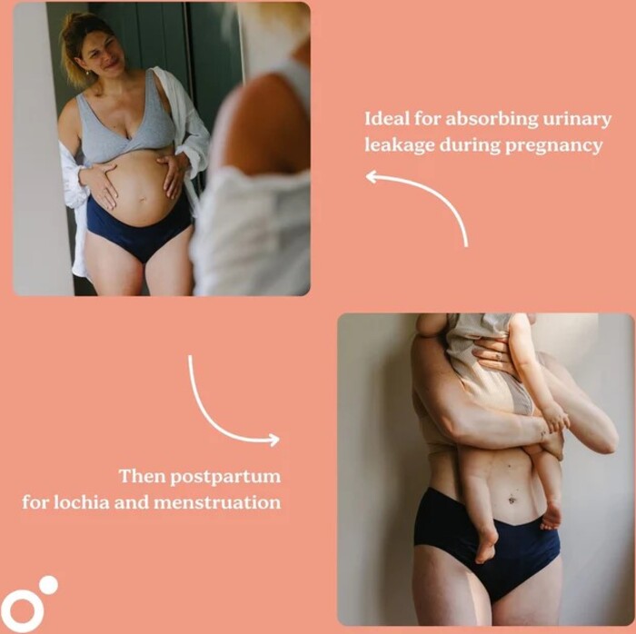 Die Flowly Unterwäsche kann während der Schwangerschaft, nach der Geburt und während der Menstruation verwendet werden. Sie ist so konzipiert, dass sie in jeder Phase der Mutterschaft Sicherheit bietet.