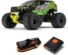 Charakteristik:Das ferngesteuerte Auto Arrma Gorgon 1:10 Smart RTR ist ein preisgünstiges RC-Modell vom Typ Monster Truck mit 2WD-Antrieb und Gleichstrommotor. Der Gorgon bewahrt alle Vorteile der Arrma-Modelle, wie Robustheit, Geländetauglichkeit und Teileunterstützung. Das GORGON MT im Maßstab 1:10 ist ein perfektes Modell für Kinder und angehende Automodellbauer. Sofort nach dem Auspacken zieht Gorgon Ihre Aufmerksamkeit mit seinem originellen Aussehen auf sich. Die Karosserie ist ab Werk in einem sehr attraktiven modernen Stil fertiggestellt und farblich auf die einzelnen Teile des Chassis abgestimmt, wie Federn, Batteriefach, Gleitschienen und Stoßfänger. Bewährte ARRMA-Technologie sorgt dank des Verbundchassis für hohe Robustheit. Die unabhängige Aufhängung, Öldämpfer und die einstellbare Bodenfreiheit gewährleisten eine komfortable Fahrt. Für unaufhaltsamen Grip überträgt das 2WD-Getriebe die Leistung des Gleichstrommotors MEGA 550 auf die massiven Reifen dBoots ® Chevron mit einem Durchmesser von 130 mm, die auf 57 mm Nylonfelgen montiert sind. Die verwendeten Metallgetriebe sind ausreichend robust, um auch ein Upgrade auf einen bürstenlosen Antrieb zu ermöglichen. Der Spektrum SLT-Transmitter bietet einen sicheren Betrieb ohne Ausfälle und ermöglicht Anfängern die Möglichkeit, die Leistung auf 75 % oder 50 % zu begrenzen. Für sorgenfreies Fahren sind im Modell wasserdichte* Komponenten verbaut - ein Spektrum 2-in-1-Regler mit Empfänger (25A) und ein Spektrum S660-Servo mit hohem Drehmoment. Alles für den Betrieb des Modells ist im Lieferumfang enthalten, einschließlich der Spektrum Smart NiMH-Batterie, deren Verwendung und Aufladung dank der Smart-Technologie sicher und einfach ist. Sie müssen sie nur an das enthaltene Spektrum S120 USB-C-Ladegerät anschließen, und die innovative Smart-Technologie kümmert sich um alle Ladeparameter. Sobald Sie im Fahren besser werden, können Sie das Modell aufrüsten und mehr Leistung erzielen, zum Beispiel durch die Verwendung eines 2S LiPo-Akkus oder ein vollständiges Upgrade auf einen bürstenlosen Antrieb. (Komponenten für höhere Leistung sind nicht im Lieferumfang enthalten). Imposantes Aussehen des Monstertrucks Die Karosserie des Modells mit beeindruckender Grafik und farblich abgestimmten Elementen am Chassis wird keinen RC-Modellfan kalt lassen. Der Schnellverschlussmechanismus der Karosserie mit Clips ermöglicht eine einfache Wartung. Robustes Verbundchassis Das Verbundchassis ist mit der Robustheit von ARRMA gefertigt. Der GORGON MT hat eine funktionale Konstruktion mit einem stabilen, schmalen Chassis, unabhängiger Aufhängung und ölgefüllten Dämpfern für eine sanfte Unebenheitenabsorption. Das Batteriefach an der Unterseite des Chassis ermöglicht den Austausch des Akkus, ohne die Karosserie abnehmen zu müssen. Räder und Reifen Massive Vorder- und Hinterreifen dBoots Chevron MT, montiert auf stabilen Nylonrädern von ARRMA, haben ein tiefes Profil, das unaufhaltsamen Grip unter allen Bedingungen bietet. Die Reifen sind aus hochwertigem Gummi für eine lange Lebensdauer gefertigt. Robustes Getriebe Das Getriebe des ARRMA GORGON MT sorgt für die Übertragung der Leistung des Gleichstrommotors MEGA 550 14T auf die Hinterräder. Das Getriebe ist ausreichend dimensioniert, um auch einem bürstenlosen Antrieb standzuhalten. Spektrum Elektronik Der 2-Kanal-Sender Spektrum SLT kombiniert sicheres Steuern auf der Frequenz von 2,4 GHz mit der Qualität von Spektrum™ für Zuverlässigkeit. Die Spektrum 2-in-1-Einheit enthält einen 25A-Regler und einen Empfänger. Das Spektrum S660-Servo hat ein hohes Drehmoment. Spektrum Smart Batterie und Ladegerät Die Spektrum Smart-Technologie sorgt für einfaches und sicheres Laden. Das USB-C-Ladegerät S120 muss nur mit einem beliebigen USB-Adapter (nicht im Lieferumfang enthalten) betrieben und der NiMH-Akku angeschlossen werden. Die Smart-Elektronik stellt automatisch die idealen Ladeparameter ein, die dann automatisch gestartet werden. Eigenschaften Hochwertige Verarbeitung des Arrma-Modells zu einem günstigen Preis Vollständig montiertes und ausgestattetes Modell, bereit für den Betrieb Schnelles und robustes RC-Modell mit beeindruckendem Design Leistungsstarker Gleichstrommotor Überdimensioniertes Getriebe, bereit für bürstenlosen Antrieb Spektrum Elektronik kompatibel mit 2S LiPo Kugellager im Antriebsstrang Karosseriebefestigung von unten für ein sauberes Aussehen Unteres Batteriefach für einfachen Austausch Wasserdichtes* digitales Spektrum S660-Servo Wasserdichte* Spektrum SLT 2-in-1-Einheit Spektrum SLT2 2-Kanal-Sender 2,4GHz 7-Zellen NiMH-Batterie Spektrum Smart 3300mAh USB-Ladegerät Spektrum S120 USB-C Smart * Informationen zur Wasserdichtigkeitspezifikation finden Sie im Benutzerhandbuch. Tipps und Tricks für den Betrieb in feuchter Umgebung finden Sie im Blog.Lieferumfang:Das Paket enthält das montierte RC-Modell des Arrma Gorgon 1:10 mit installierten Komponenten: Arrma Gleichstrommotor Mega 550 14T, Steuergerät Spektrum SLT 2-in-1 Regler 25A, Spektrum Servo S660 5kg. 4x AA-Batterien, 3x Imbusschlüssel (1,5, 2, 2,5 mm), Multifunktionsschlüssel, Dämpferunterlagen, Brücke, Spektrum SLT2 2.4GHz Sender, Spektrum Smart Ladegerät S120 20W USB-C, NiMH-Batterie Spektrum Smart 8.4V 3300mAh 7-Zellen Hump. Anleitung SK und mehrsprachiges Handbuch EN, DE, FR.Wir empfehlen, zusätzlich zu kaufen:Alles Notwendige für den Betrieb finden Sie im Paket. Für die Stromversorgung des beiliegenden USB-Ladegeräts empfehlen wir die Verwendung eines leistungsstarken universellen USB-Netzadapters (18W). Empfohlene Akkus Um die Fahrzeit zu verlängern, empfehlen wir den Kauf eines zusätzlichen Akkus. Für normales Fahren und für Kinder empfehlen wir, einen identischen Akku zu kaufen, der im Lieferumfang enthalten ist. Für maximale Fahrzeit und größere Beschleunigung können moderne LiPo-Akkus verwendet werden. Wenn Sie verschiedene Akkutypen ve