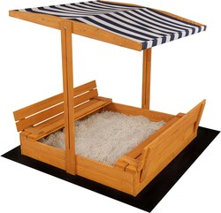 Baby Mix Sandkasten aus Holz mit Abdeckung und Bänken 100x100 cm