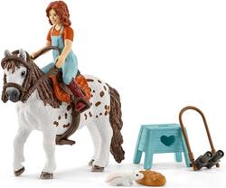 Die achtjährige Mia hat vor nichts Angst, auch nicht vor Pferden. Eines Tages beschloss sie, ein Pferd zu reiten, das so groß war wie ihre ältere Schwester Hannah. Obwohl Mia und ihre dreijährige Shetlandponystute Spotty so süß aussehen, kann sie ziemlich clever sein. Schleich Figuren sind bis ins kleinste Detail modelliert und animieren Kinder zum Spielen und Lernen. Die Mia-Figur kann auf einem Pferd reiten und hat bewegliche Hände. Das Set enthält: 1x Mia Figur, 1x Shetlandpony, 1x Sattel, 1x Steigbügel, 1x Zaumzeug, 1x Stuhl, 1x Fernglas, 1x Gebäck, 1x Maus. Maße: 15 x 5,5 x 11,5 cm. Alter: 5-12