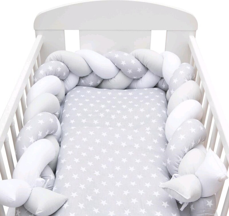 Der weiche und praktische geflochtene Zopf New Baby ist eine moderne Alternative zu traditionellen oder Kissen-Schutzgittern, nicht nur für das Kinderbett. Alle drei Stränge sind aus sehr hochwertigem Baumwollmaterial und antiallergischer Polyesterfüllung gefertigt und von Hand zu einem Zopf geflochten. Sie können ihn im Bett, in der Wiege verwenden, wo er das Kind vor den harten Gitterstäben des Bettes schützt und von der kalten Wand isoliert. Der Schutzgitter passt sich jedem Bett an und kann mit den drei mitgelieferten Bändern leicht befestigt werden. Ein älteres Kind kann ihn zur Unterhaltung oder als originelle Dekoration im Kinderzimmer nutzen.