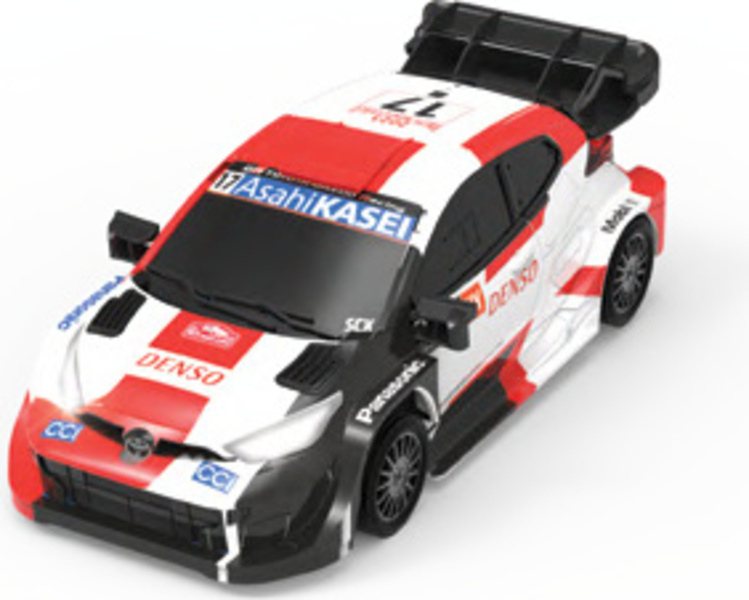 Dráhové autíčko SCX Compact Toyota Yaris WRC 2023 v mierke 1:43, pre autodráhy SCX Compact.
