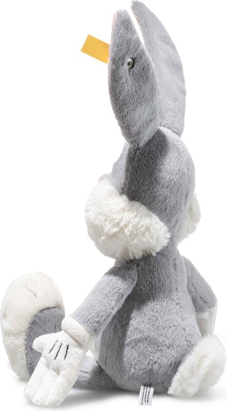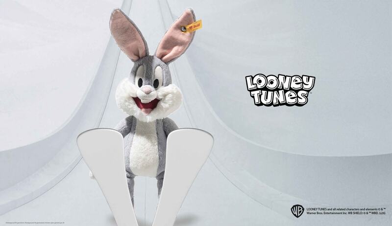 Vervollständigt mit dem berühmten Steiff „Button in Ear“ ist Bugs Bunny ein treuer Begleiter zum Kuscheln für ein Leben lang.