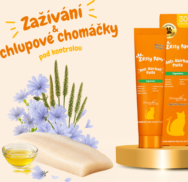 Unterstützen Sie den natürlichen Übergang verschluckter Haare durch den Verdauungstrakt Ihres Katzenfreundes und helfen Sie, deren Ansammlung mit der Zesty Paws® Anti-Hairball Paste zu verhindern. Diese Premium-Funktionspaste für Katzen, entwickelt in Zusammenarbeit mit Tierärzten, vereint großartigen Geschmack, spielerische Darreichungsform und sorgfältig ausgewählte Zutaten. Funktionale Zusammensetzung mit Fischöl, hergestellt mit der Qualitysilver®-Technologie, Inulin und Flohsamen trägt zur natürlichen Funktion der Verdauung bei, hilft, das gesunde Aussehen von Haut und Fell zu erhalten, und hilft, die Bildung von Haarballen zu reduzieren. Die funktionalen Pasten von Zesty Paws haben zudem einen unwiderstehlichen Geschmack, der selbst die größten Katzen-Gourmets erfreut.