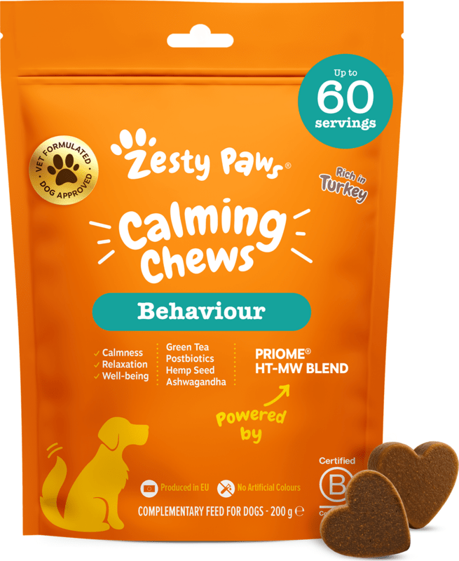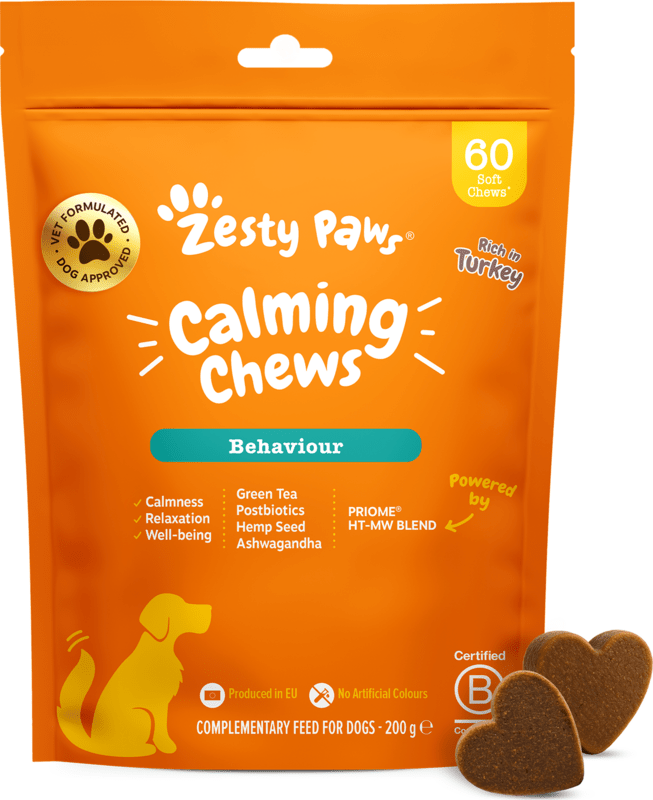 Unterstützen Sie die Entspannung und die ausgeglichene Stimmung Ihres Hundes mit Zesty Paws Beruhigungs-Kaubonbons. Diese Premium- funktionalen Nahrungsergänzungsmittel für Hunde, entwickelt in Zusammenarbeit mit Tierärzten, vereinen großartigen Geschmack, spielerische Darreichungsform und sorgfältig ausgewählte Zutaten. Die funktionale Zusammensetzung mit der patentierten Zutat PRIOME® HT-MW BLEND trägt zur inneren Balance, zum allgemeinen Wohlbefinden bei und hilft, die Entspannung und ein ruhigeres Verhalten Ihres vierbeinigen Freundes zu fördern – und das ohne sedative Wirkung.